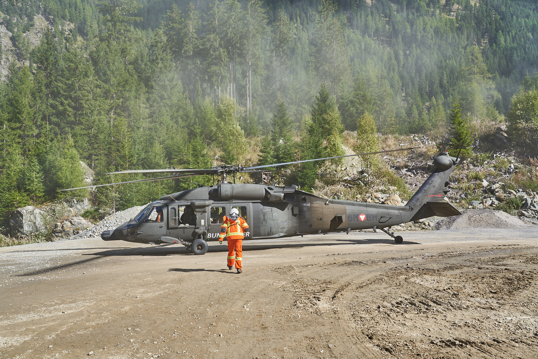 - Luftunterstützung für Mannschafts- und Materialtransporte durch das Bundesheer (Black Hawk, Bell 212) und BMI-Flugpolizei