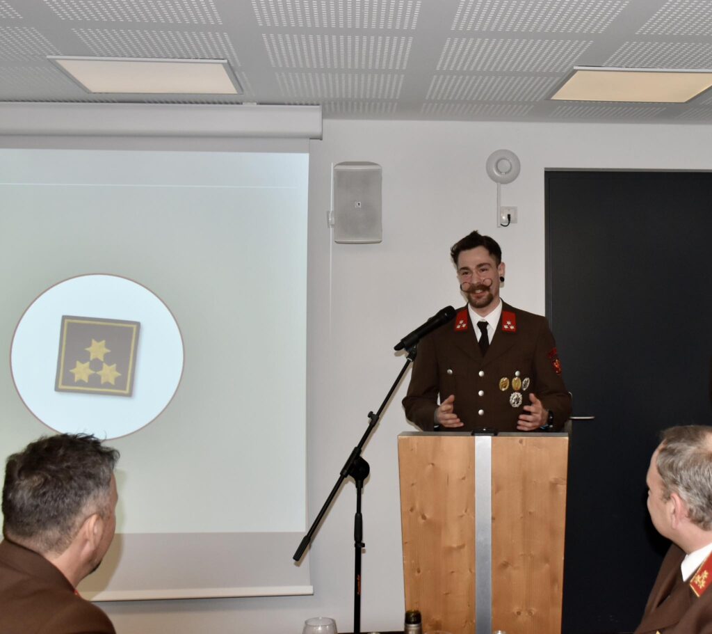 Kommandant Lukas Schöpf präsentierte einen umfassenden und detaillierten Rückblick auf das vergangene Feuerwehrjahr und hob dabei insbesondere den hohen Einsatz und das große Engagement der Mannschaft hervor.