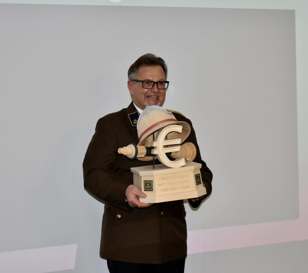 Ein besonderer Dank gilt dem scheidenden Kassier Stefan Nößig für 18 Jahre gewissenhafte, nachhaltige und vertrauensvolle Kassenführung. In dieser Zeit betreute er unter anderem sieben Zeltfeste, darunter zwei Landesfeuerwehrbewerbe, und war stets ein verlässliches Mitglied des Ausschusses. Als Zeichen der Anerkennung wurde ihm ein personalisiertes Geschenk aus Holz überreicht.